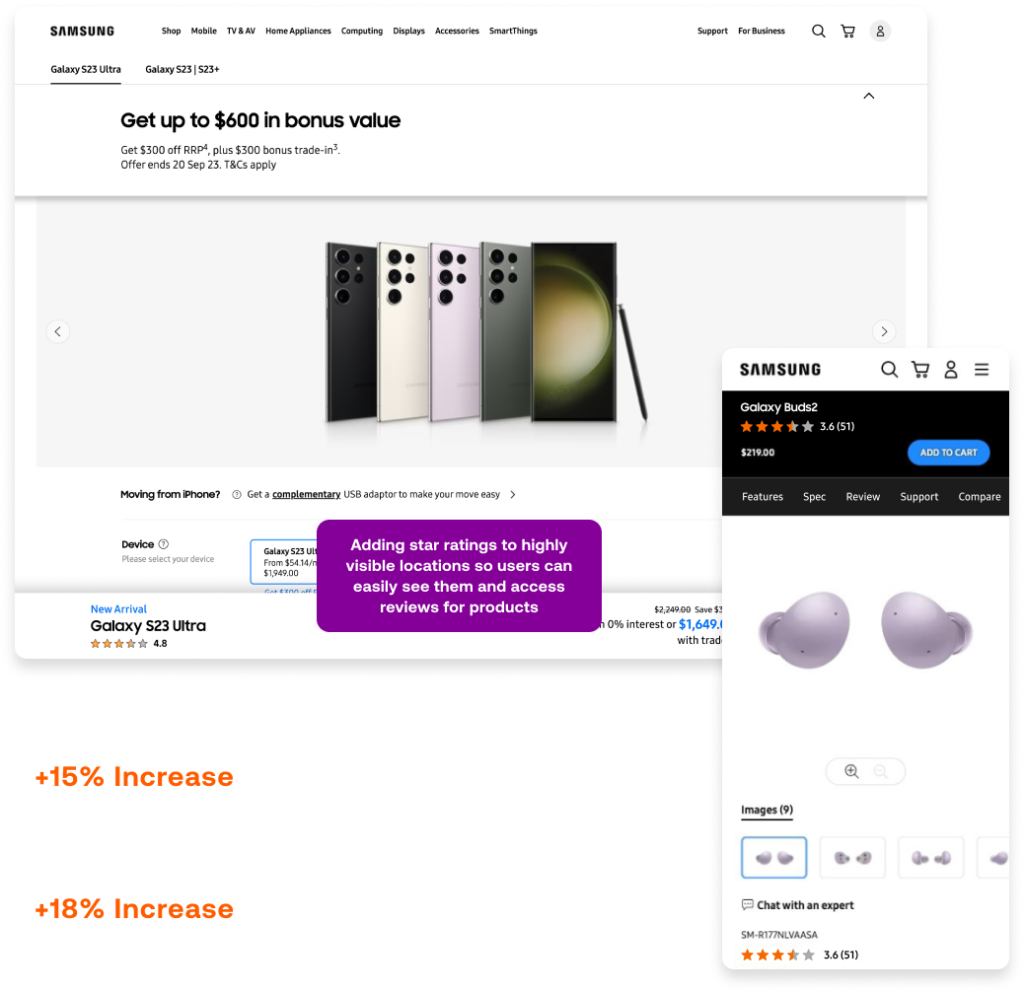 By improving on their messaging, usability and overall website shopping experience, we communicated to Samsung customers the advantages of buying Samsung products through their website and instilling trust and confidence in the website that previously did not exist.