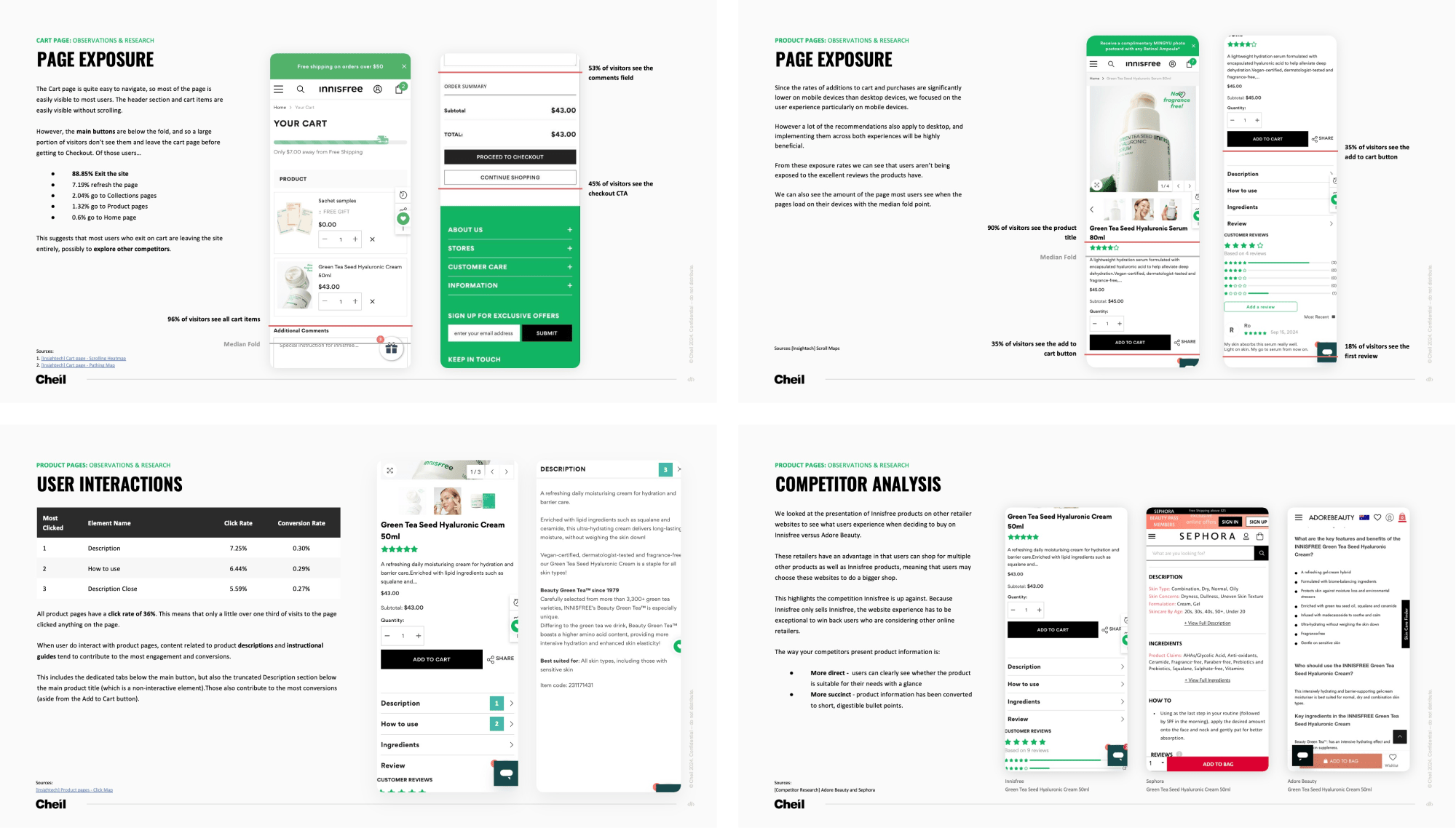 A culmination of a considerable amount of research spanning across data analysis, user observation, industry research and design principles, the UX audit delivered to Innisfree identified the areas of the site which were bringing down the whole user experience, resulting in sub-optimal performance, and a low conversion rate.