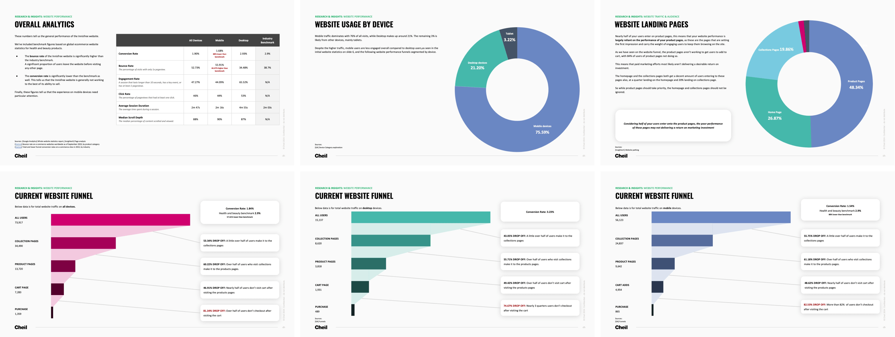 Utilising Google Analytics and Insightech, we conducted an in-depth data analysis to pinpoint the weakest aspects of the user experience, including user entry points, continuation rates, device performance, and industry benchmarking.