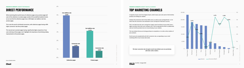 This initial data analysis uncovered our priorities: The cart and the product pages on mobile devices were performing sub-optimally and the user experience at these points were bringing down the website’s performance as a whole.