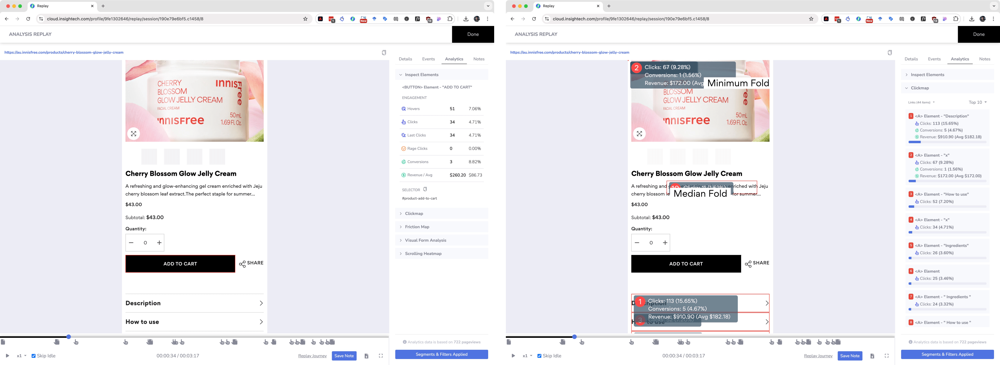Now that we had identified out problem areas, we employed the use of more analytics tools, namely that of Insightech, to product scroll and interaction maps of the cart and product pages to see what users were interacting and engaging with (and what they weren’t), as well as brining in some competitor analysis from some much more established online brands.